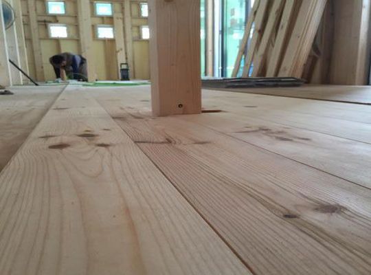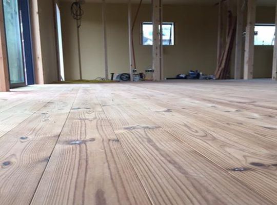 2015/09/01古間木新田の家、フローリング工事が進んでいます。 サーモウッドという燻した木材を使用しています。 雰囲気があり、足触りもよく、よい出来上がりです。 お施主様にも... -