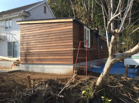 2016/02/21HR邸の外壁工事が完了しました。 既存部分の外壁と合わせて鎧張りとしました。 板張りをした増築部分が、ホテルの別館のような雰囲気になり 周囲の雰囲気ともマッチして... -