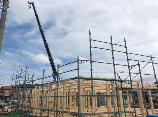 2016/09/22先週に引き続き、建て方を行いました。 中庭のある平屋です。 台風の影響で雨が続いておりましたが、 この日は雨も一休み。 涼しく快適な中建て方を行い、 作業もはかど... -